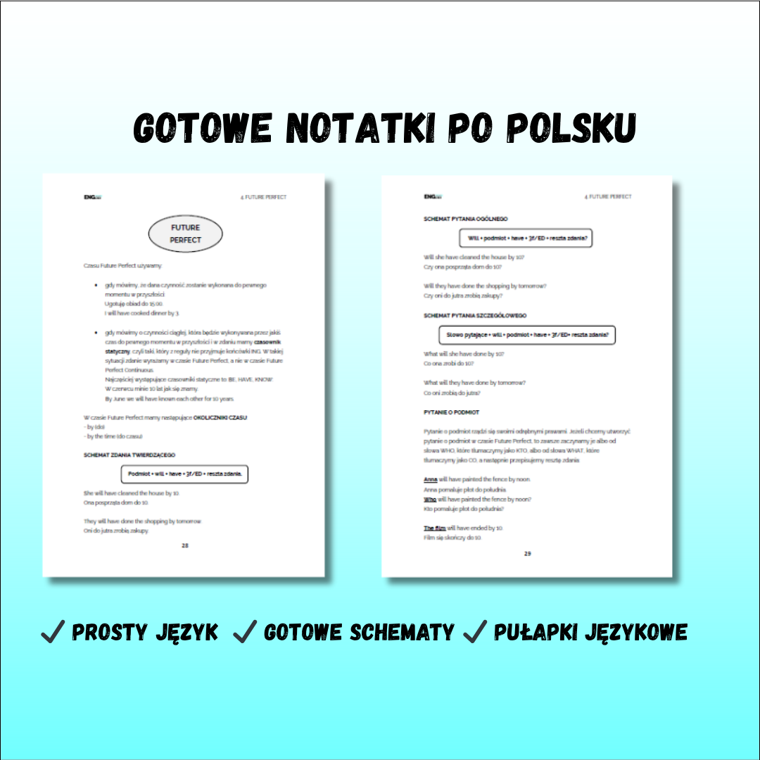 ✅ Gotowe notatki w języku polskim – każde zagadnienie gramatyczne wyjaśnione krok po kroku, prostym językiem.