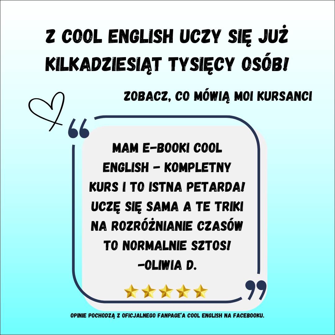 Kompleksowy kurs gramatyki angielskiej - od podstaw do zaawansowanych zagadnień. Dołącz do kilkudziesięciu tysięcy osób, które uczą się z Cool English! Mega pakiet Cool English Grammar to aż 9 e-booków PDF (Repetytoria i Tłumaczenia), które tworzą kompletny kurs do nauki gramatyki angielskiej i czasów angielskich.