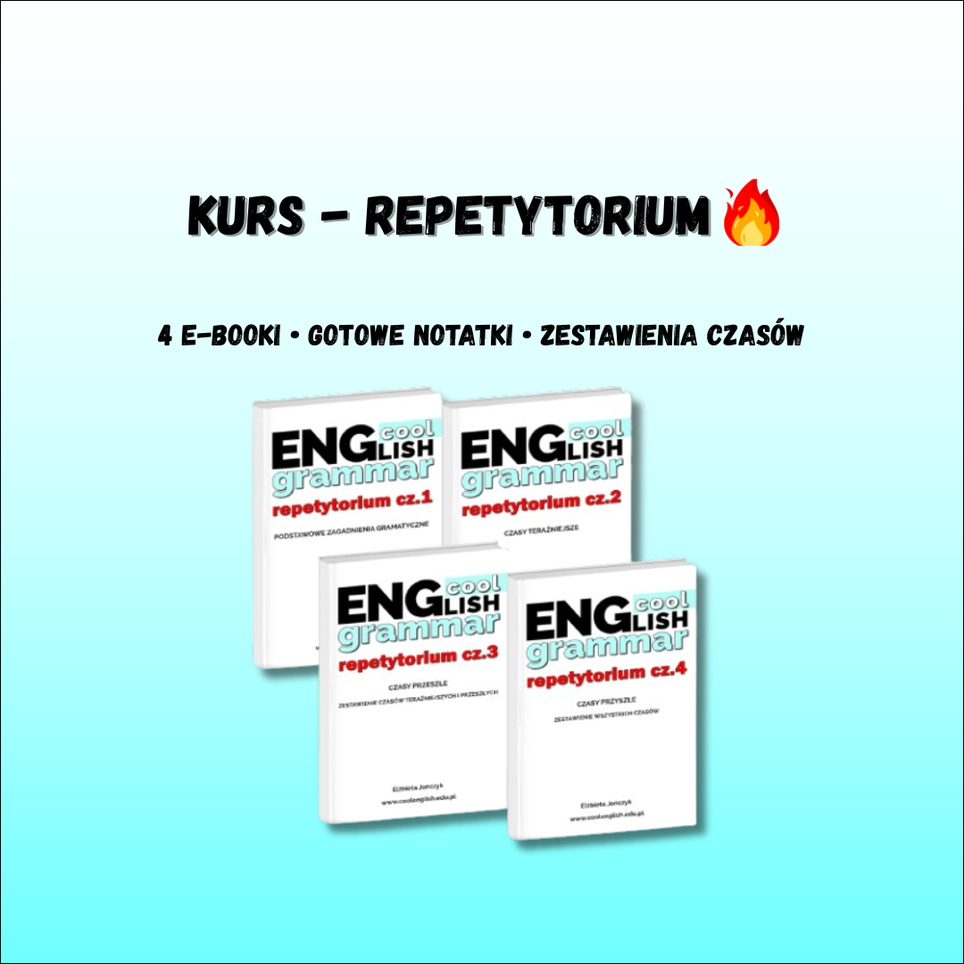 - Repetytorium cz.4 – czasy przyszłe oraz czytelne zestawienie wszystkich czasów, które pomagają uporządkować całość.