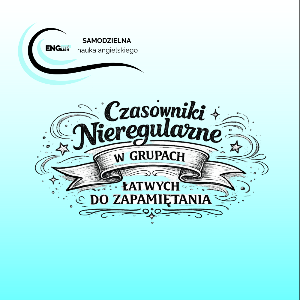 Poznaj czasowniki nieregularne w zupełnie inny sposób. Dzięki podziałowi na grupy uczysz się ich szybciej i skuteczniej. Trzy takie same formy, pierwsza i trzecia identyczna, druga i trzecia - a nawet formy, które się rymują. Prosty patent, który naprawdę ułatwia zapamiętywanie.