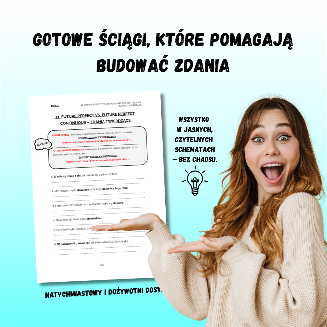 Przestaniesz tylko „znać teorię”, a zaczniesz budować zdania w czasach przyszłych po angielsku bardziej świadomie i poprawnie.