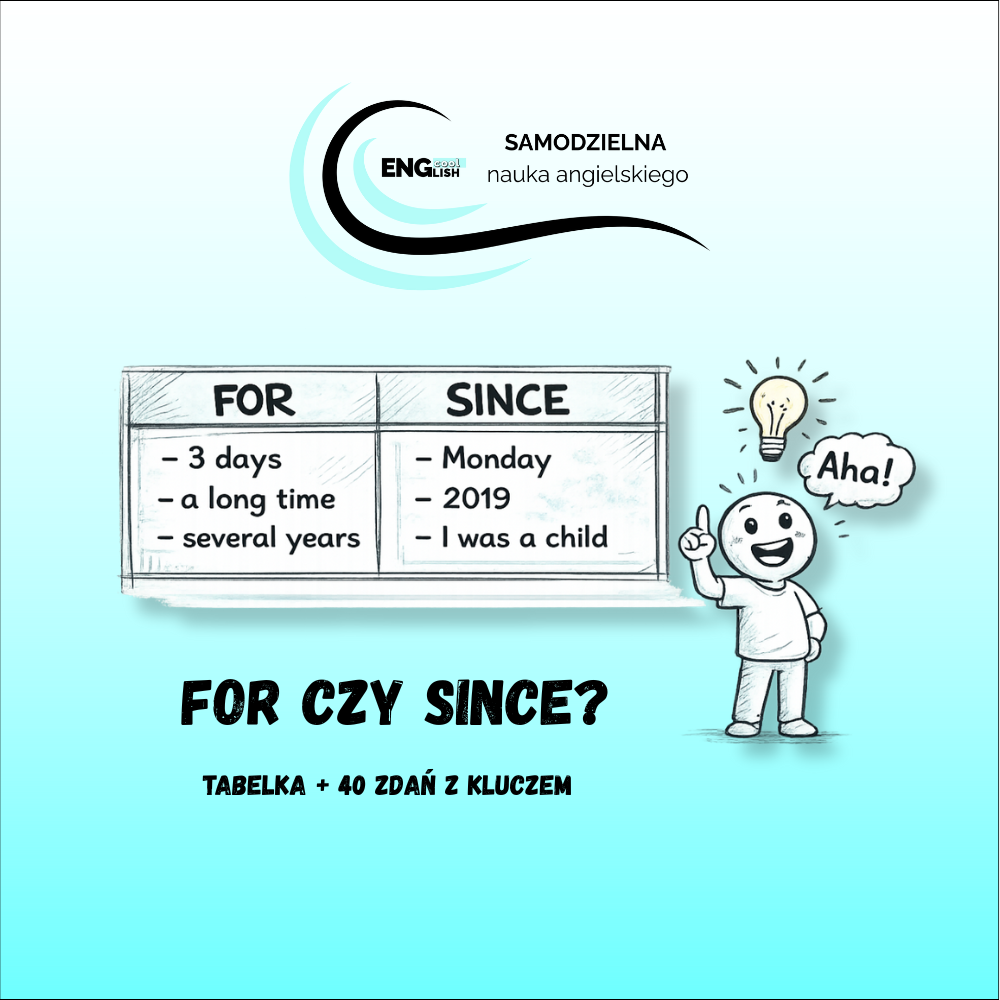 Masz problem z rozróżnianiem FOR od SINCE? Pobierz darmowy PDF (A2–B2): czytelna tabelka + 40 zdań z kluczem, dzięki którym zrozumiesz kiedy używamy, którego wyrazu raz na zawsze.