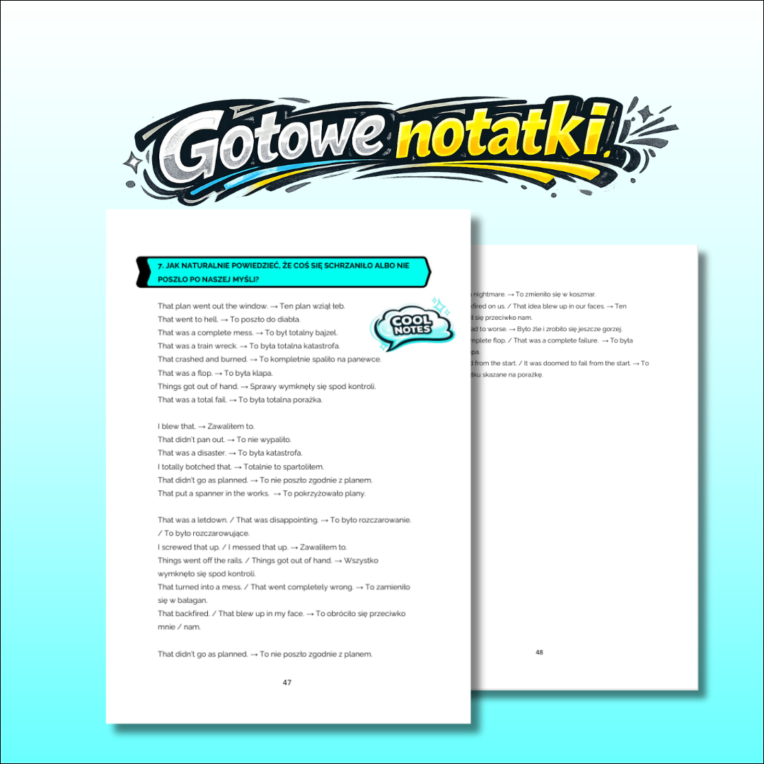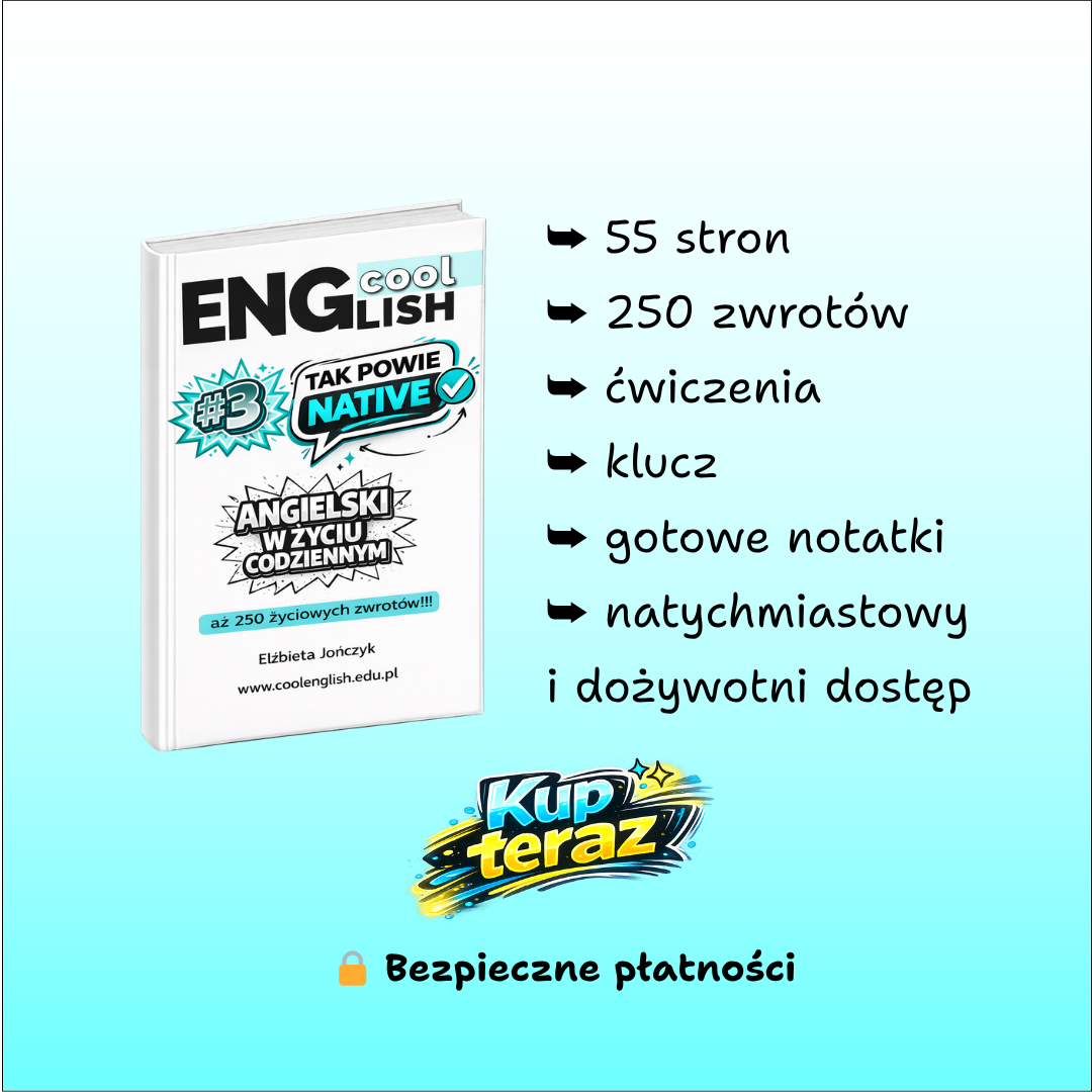 To praktyczny zestaw zwrotów, dzięki którym przestajesz tłumaczyć w głowie i zaczynasz reagować naturalnie w codziennych sytuacjach — dokładnie tak, jak robią to native speakerzy.