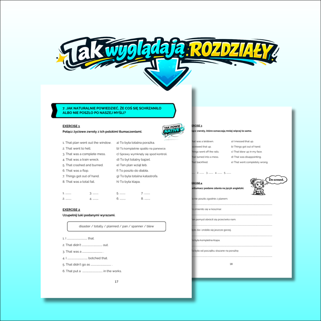 W e-booku znajdziesz ćwiczenia dopasowane do realnych sytuacji, zadania uczące gotowych reakcji oraz praktyczne użycie języka, dzięki czemu uczysz się mówić, a nie tylko rozumieć.