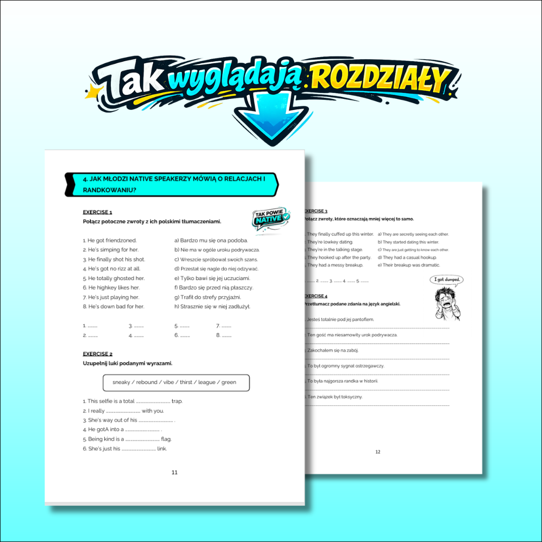 W e-booku znajdziesz praktyczne przykłady, gotowe reakcje i zwroty, które pojawiają się w realnych rozmowach i w internecie. Dzięki temu zaczynasz rozumieć kontekst, intencje i sposób, w jaki naprawdę komunikują się młodzi native speakerzy.